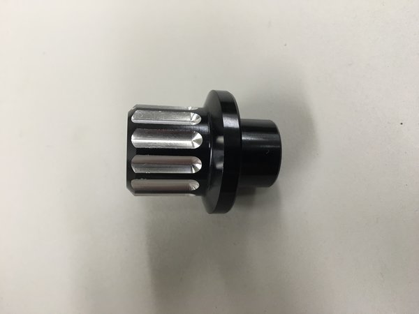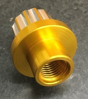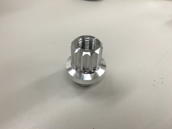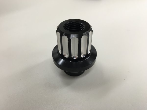 These shank style or mag style 12 point billet 7075 aluminum nuts use a standard 12 point 3/4" socket and are manufactured in house using only domestic material and they come in a variety of sizes & styles. They feature a reduced diameter head (3/4") to allow clearance of your socket into the wheel pocket. From machined finish, black with machined finish contrast cut, gold with machined finish contrast cut or even all black they are the perfect compliment to your race wheels. We also make matching lug nut spacers too.