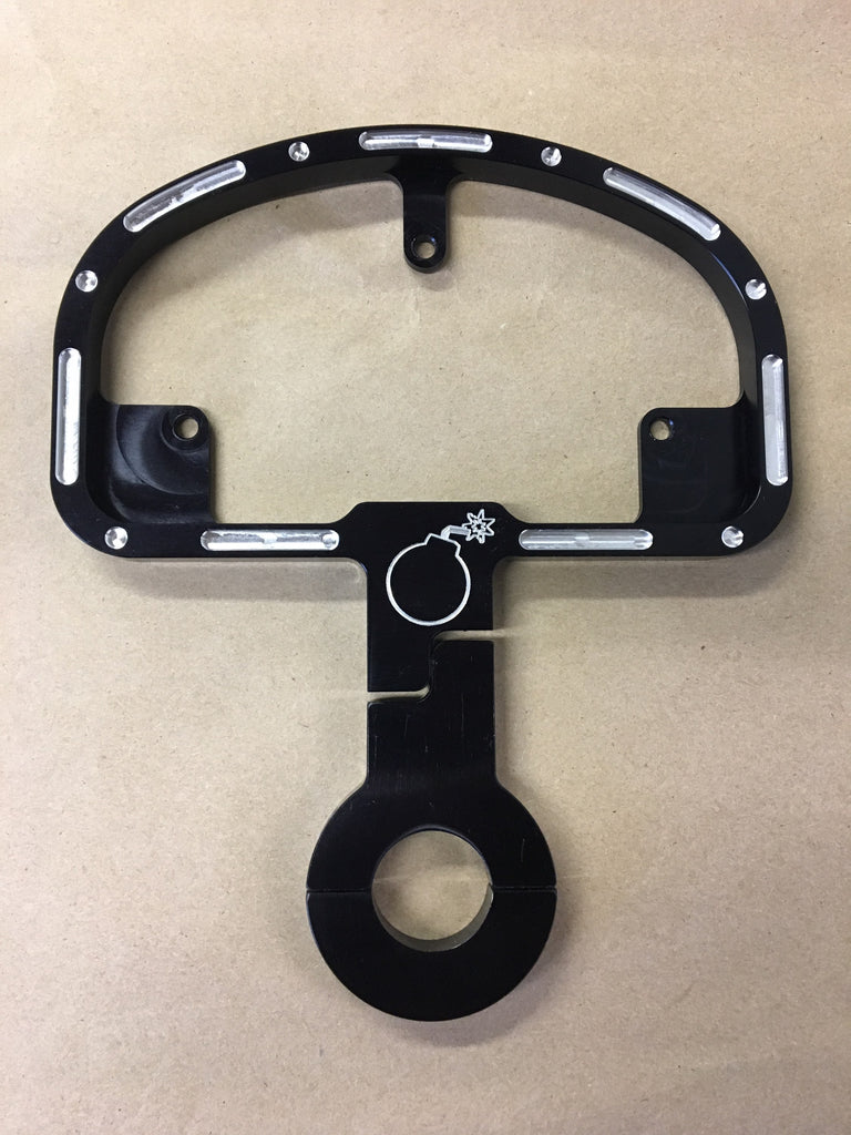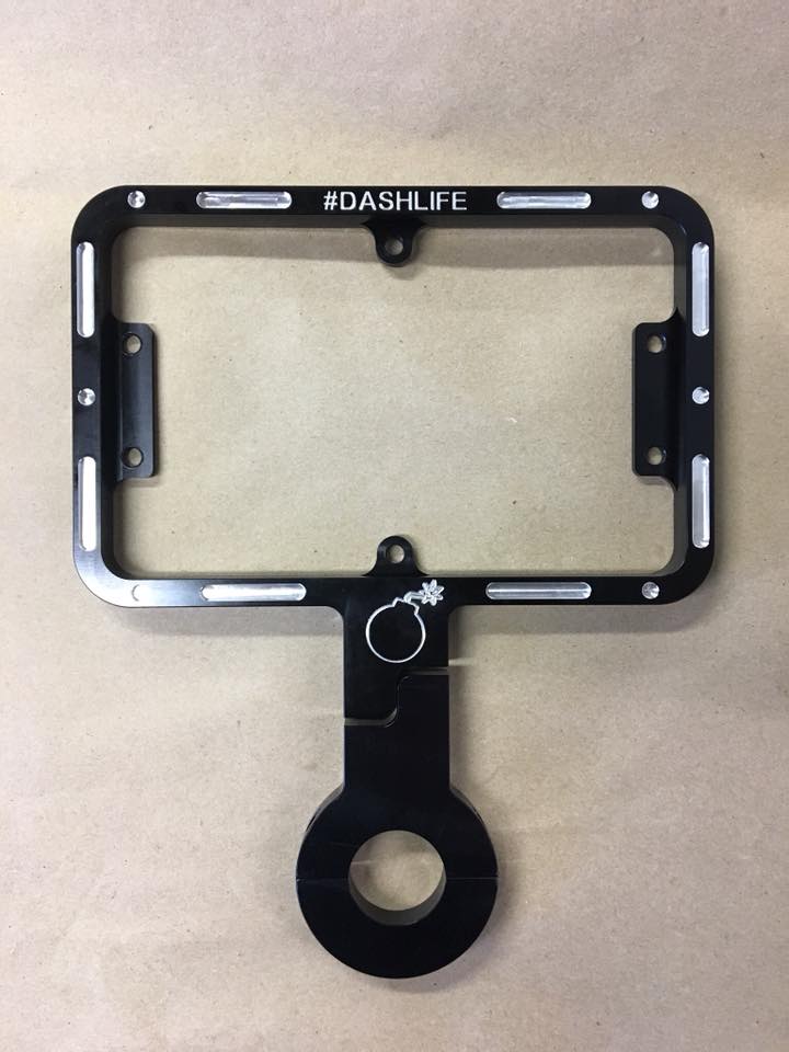 PLEASE SPECIFY CLAMP SIZE!!! PLEASE SPECIFY CLAMP SIZE!!! Our billet aluminum dash mounts are made from USA made 6061 and machined at our facility in Brownsburg, IN. They feature a half clamp that installs on your tube style steering column and then adjusts for a better line of site with the built in swivel. They are available for Racepak IQ3, Racepak UDX and Holley style dashes. The finish choices are machined finish and black anodized and the tube clamp sizes are available from 1-5/8”. 1-1/2" & 1-1/4” diameter clamps.PLEASE SPECIFY CLAMP SIZE!!! PLEASE SPECIFY CLAMP SIZE!!!
