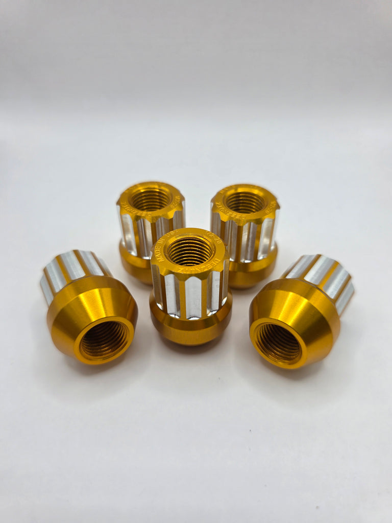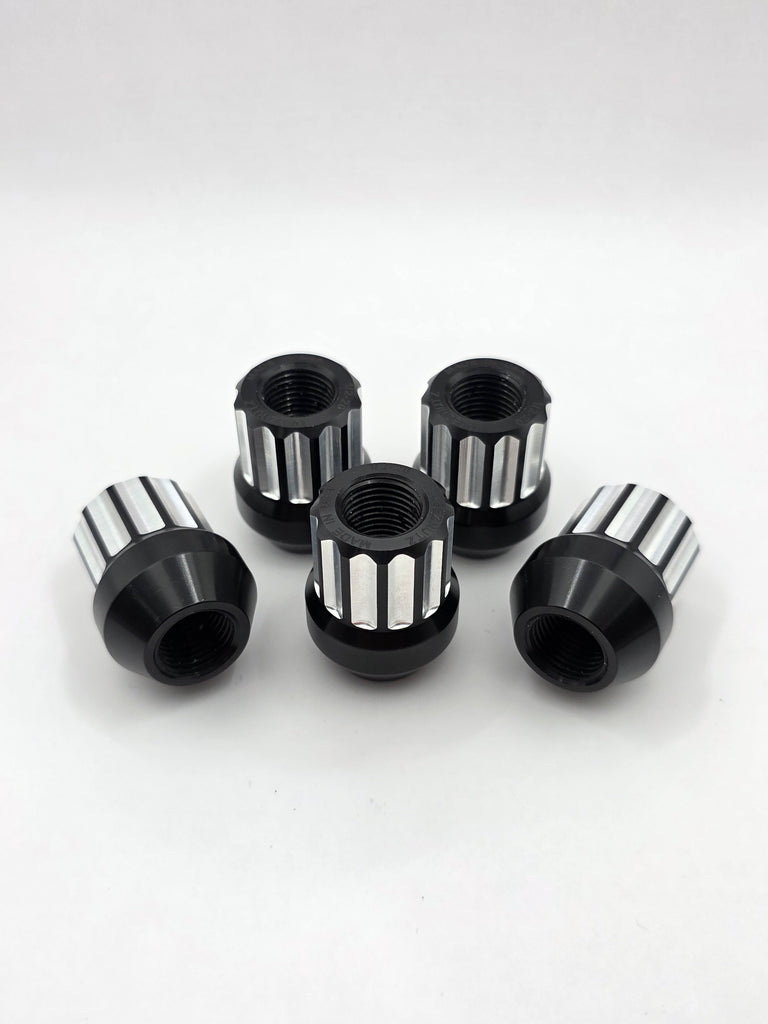 DEEZNUTZ Acorn Style or Tapered Seat Style 12 Point Lug Nuts are Machined from Premium USA 7075 Billet Aluminum, delivering race-grade performance in a variety of sizes & styles. From Machined Finish, Black with Machined finish contrast cut or even Gold with machined finish contrast cut they are the perfect compliment to your race wheels!