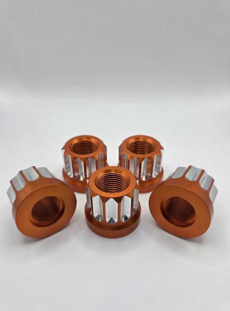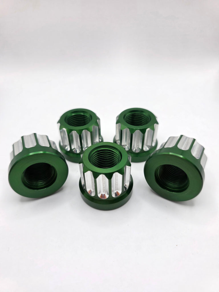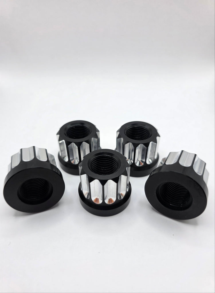 DEEZNUTZ Lug Nuts are Machined from Premium USA 7075 Billet Aluminum, these 12-point lug nuts deliver race-grade performance with 5/8-18 threads and are compatible with standard 15/16" sockets. Manufactured entirely in-house using domestic materials, they provide the reliability and precision to meet your demands. Select from Machined, Solid Black, or Vibrant Color Options featuring machined contrast-cut details to enhance your race wheel aesthetic. We also produce coordinating lug nut spacers available in multiple sizes.